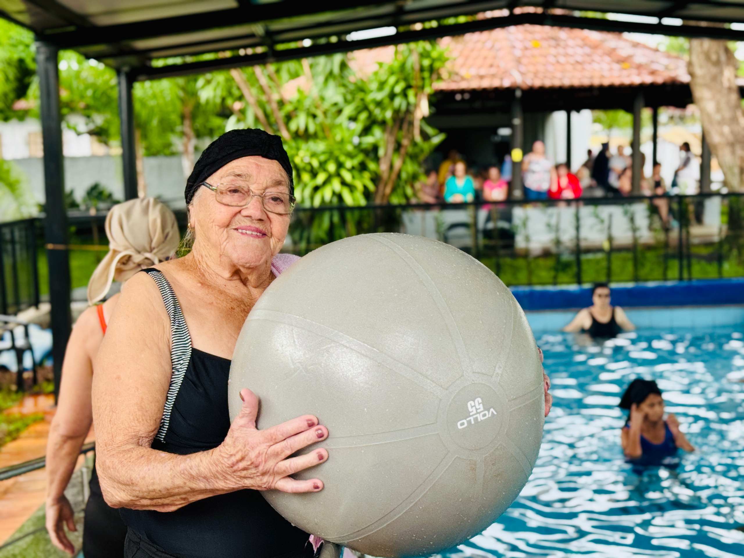 Idosos participaram da atividade que movimentou a unidade; cerca de 100 beneficiários passaram pela piscina, provando que idade é só mais um número